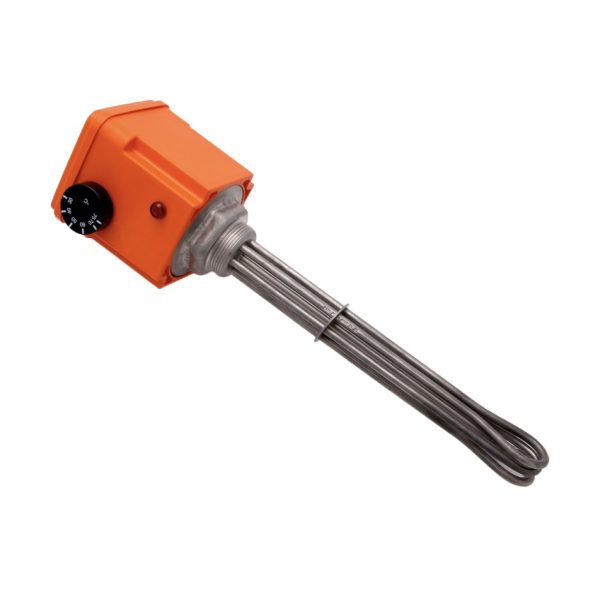 Sähkövastus on helppo asentaa suoraan varaajan 1½” liitäntään. IP65-luokitus takaa turvallisen käytön kosteissa tiloissa, ja termostaatti varmistaa energiatehokkaan ja turvallisen lämmityksen.