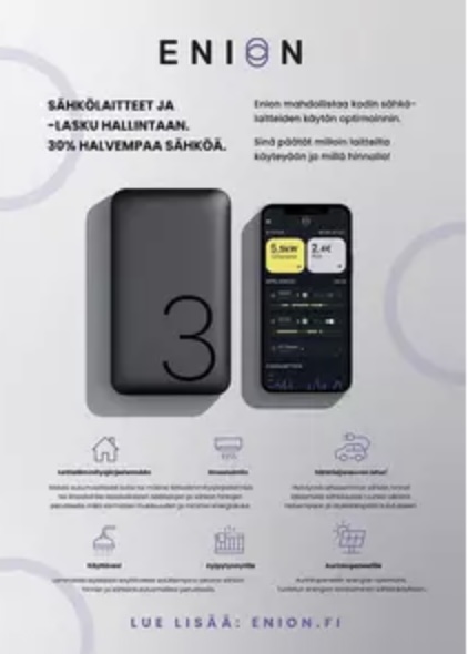 Enion käyttää automaattisesti kodin suurimpia sähkönkuluttajia kilpailukykyisimpään hintaan. Toimintaa voi seurata web-sovelluksen avulla, joka toimii sekä tietokoneella että älypuhelimella. Enion on välttämätön hankinta niille pörssisähköasiakkaille, jotka haluavat turvata selustansa hintavaihteluilta.