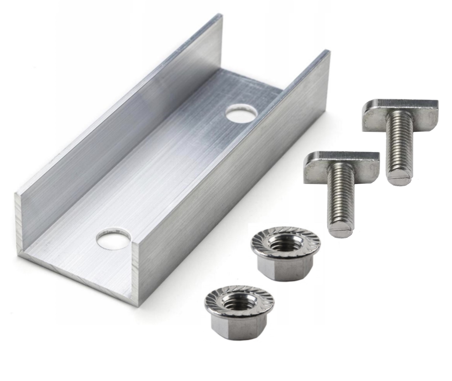 Sisältö: 2 kpl M10x20 mm T-pultteja + 2 kpl M10 laippamuttereita